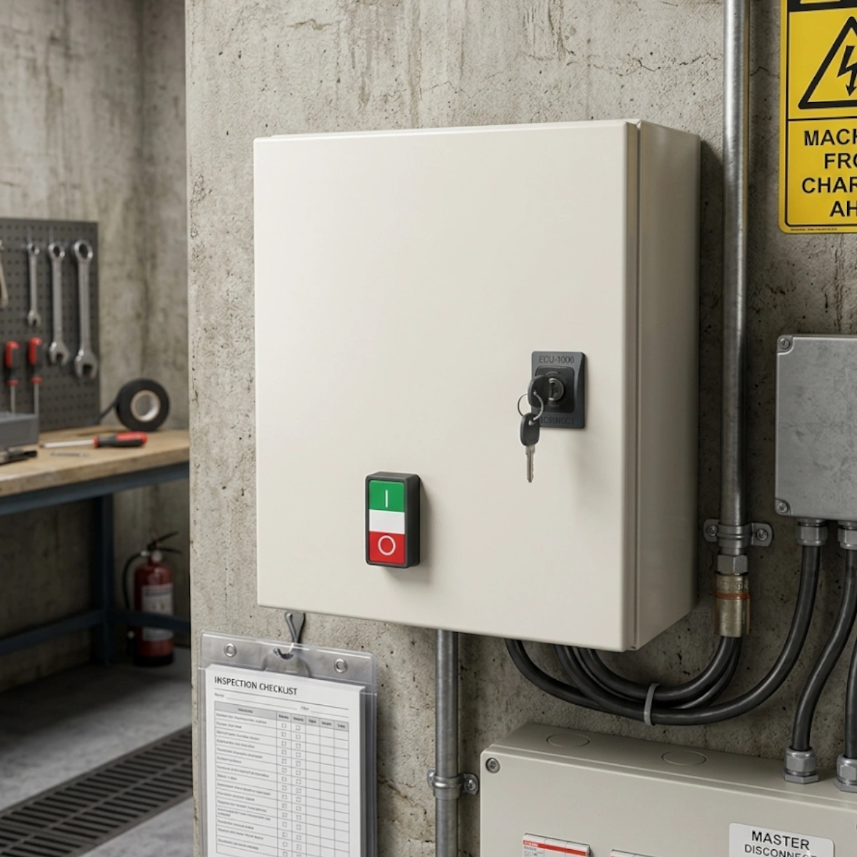 The automatic star-delta starter is mounted in a durable sheet metal enclosure. The enclosure is equipped with an easily accessible start/stop button located directly on the door. The unit is delivered complete with an integrated overload relay. For optimal function and motor protection, the overload relay should be set to 0.58 x the motor's rated current.