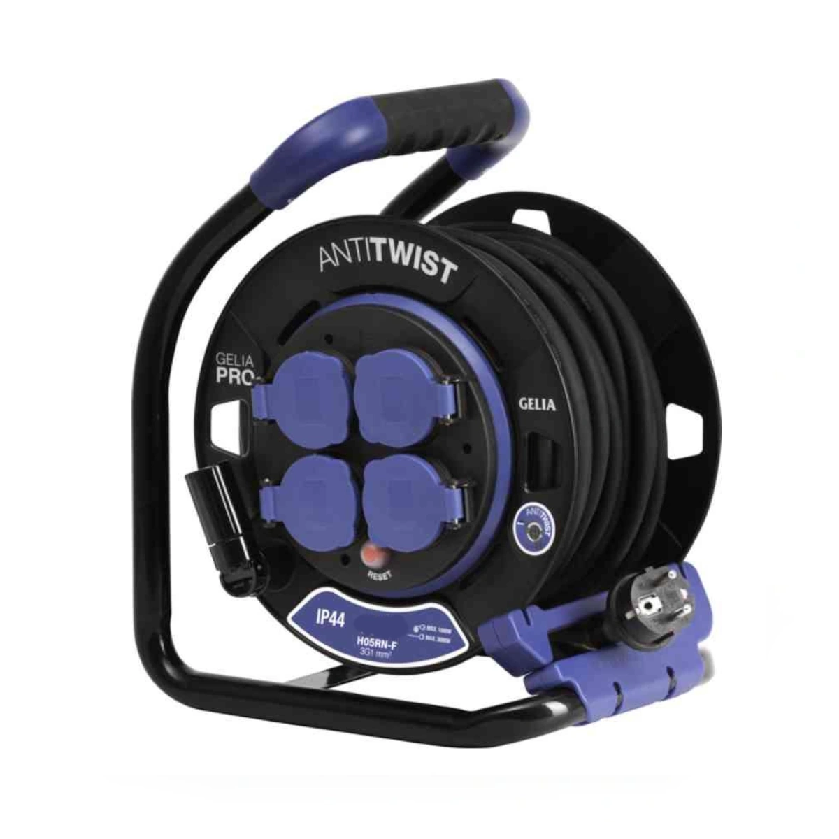 Cable Reel With Cover And Steel Stand Earthed Fixed Hub Anti-Twist Pro 40m H07RN-F 3G1.5mm² Gelia