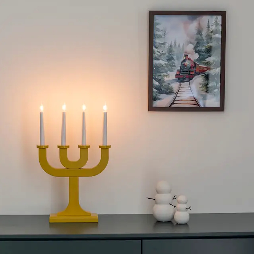 A yellow Advent candlestick that dares to take up space, stylish and modern with four candles. The lacquered wooden surface creates a beautiful contrast against the warm light and gives an elegant expression in both classic and minimalist homes.