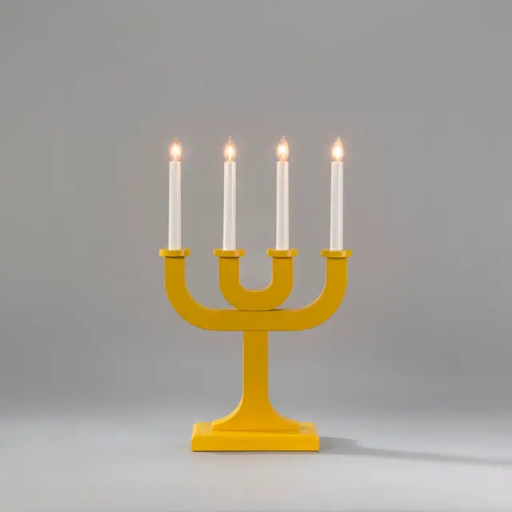 Candlestick 4 Candles Indoor E10 Wood Yellow Konstsmide