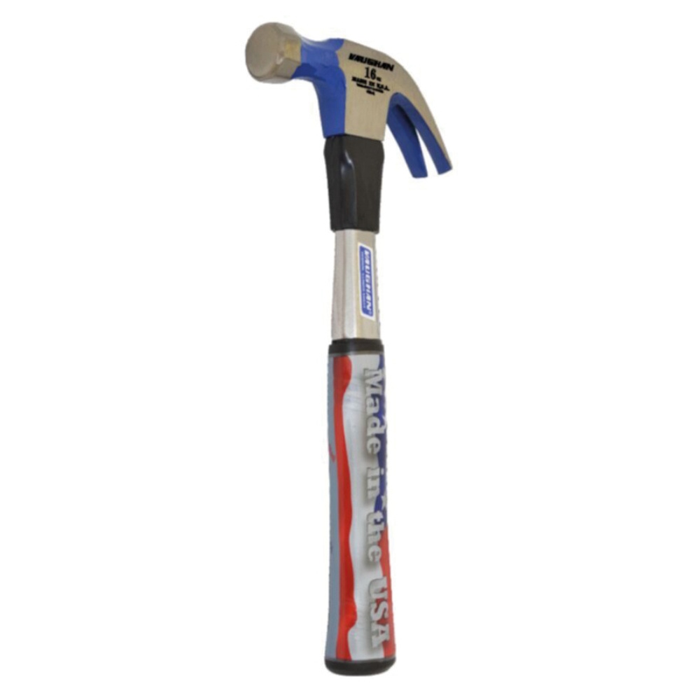 Carpenter's hammer Vaughan with tubular steel handle and patented recoil damping in the form of a hickory plug in the eye with an extension into the handle that increases strength and very effectively absorbs vibrations. The handle is attached with a carved steel wedge and epoxy glued to the head and also provided with an impact protection in ABS/nylon plastic at the top under the head that effectively protects the tubular steel handle from damage in the event of oblique hits. The handle is ergonomically contoured from grip-friendly PVC for extra comfort and long service life. Meets the requirements according to ISO9002 / EN29002 / BS5750Pt2.