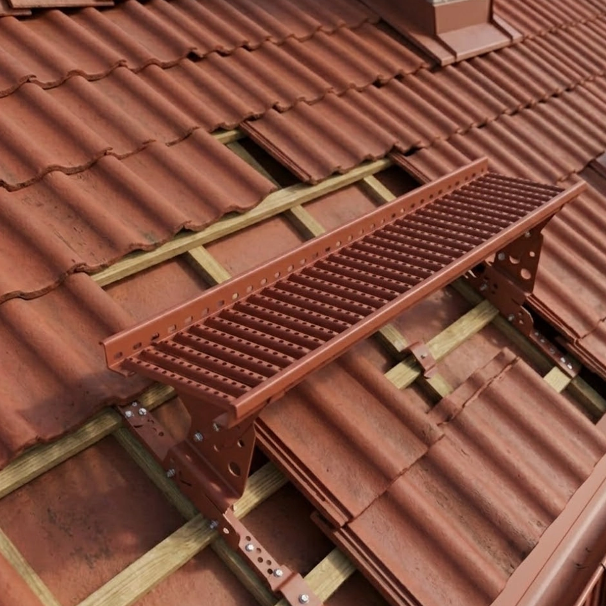 Increase safety with a complete roof bridge package in a discreet brick red color that matches your roof perfectly. This solution is designed for clay tile tiles (LTG) with smooth attachment directly to battens. The system is modular, making it easy to combine multiple units to the length required for your project.