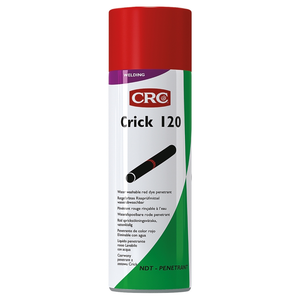 Penetrating dye for marking cracks and defects. Red-colored penetrant liquid, which can be washed off with water, for non-destructive testing of metal surfaces. The penetrant liquid can flow into small cracks for 10 - 20 minutes. The remaining liquid must be washed off before using the developer.