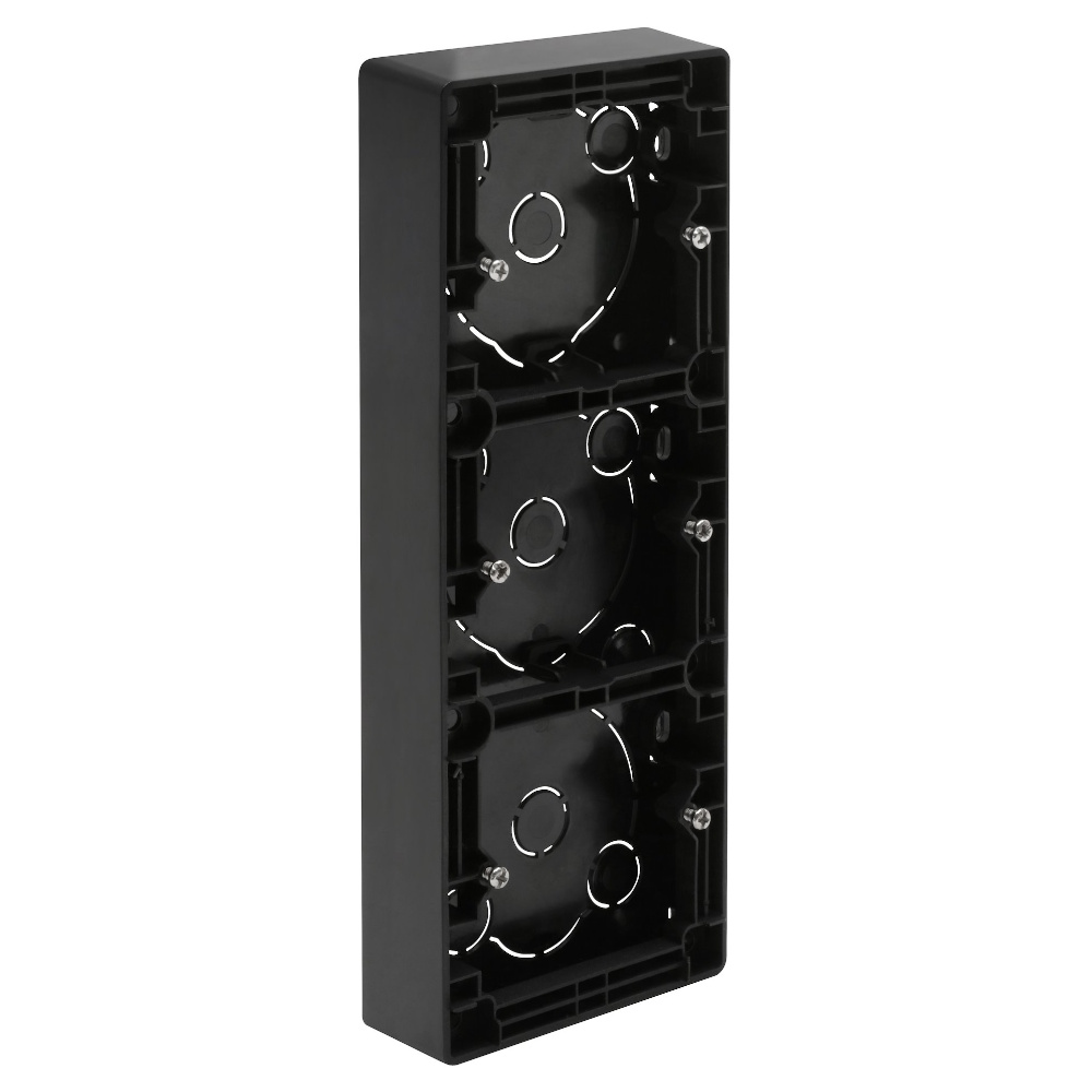Extension frame that fits all types of switches. Does not fit sockets, dimmers, etc. if the frame is not over a device box. Back with recesses for boxes, etc.