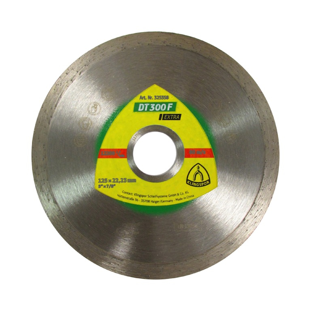 DT 300 F Extra diamond cutting disc for universal use in tiles & clinker. Thin disc with closed edge is ideal for fine cuts. Clean and fine cuts in thinner types of tiles & clinker. Thin sintered diamond cutting disc with closed edge. Attractive price/performance ratio.