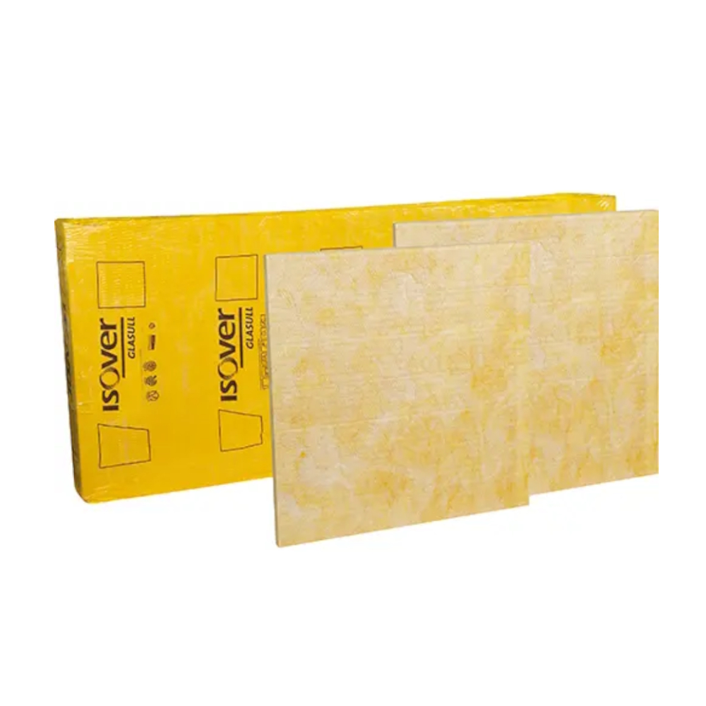 Rigid glass wool board for external insulation on a windproof frame, The insulation is placed behind a ventilated facade.