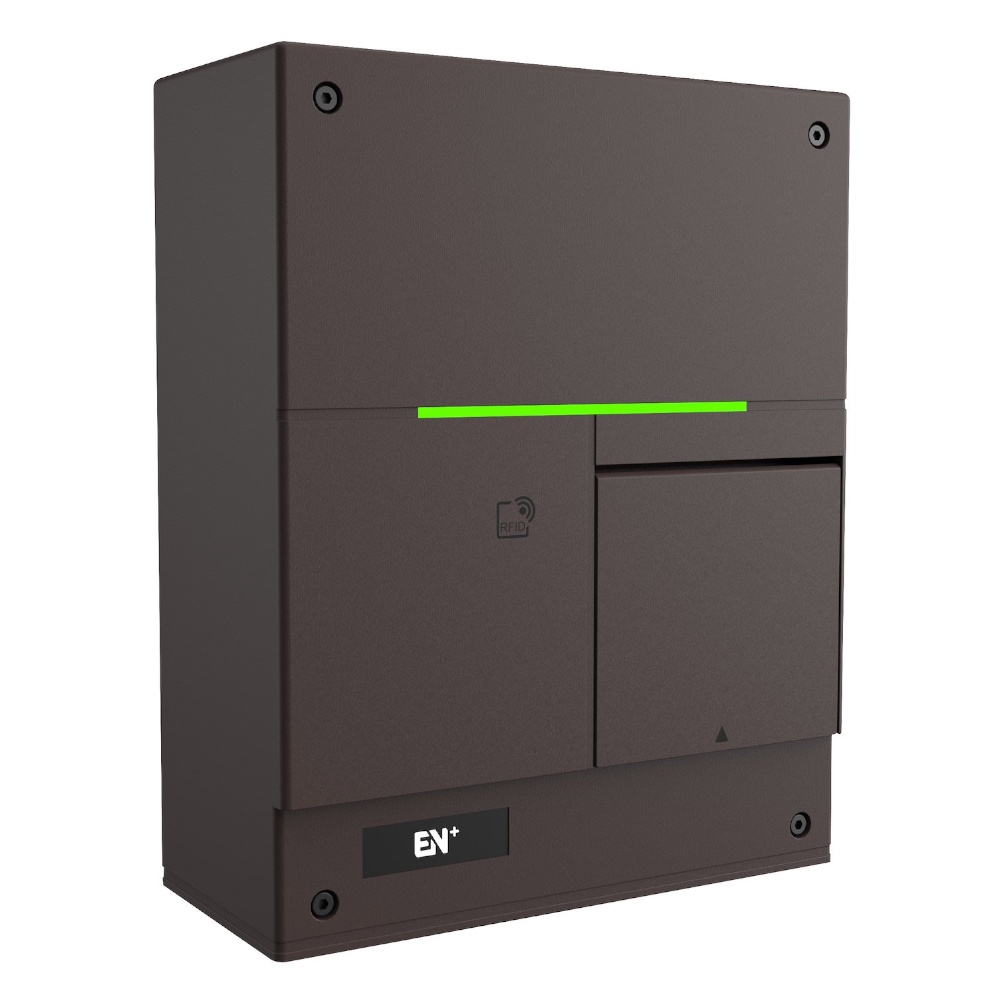A smooth and compact charger with a well-thought-out design adapted to blend in, regardless of the type of property, delivered with a black front.