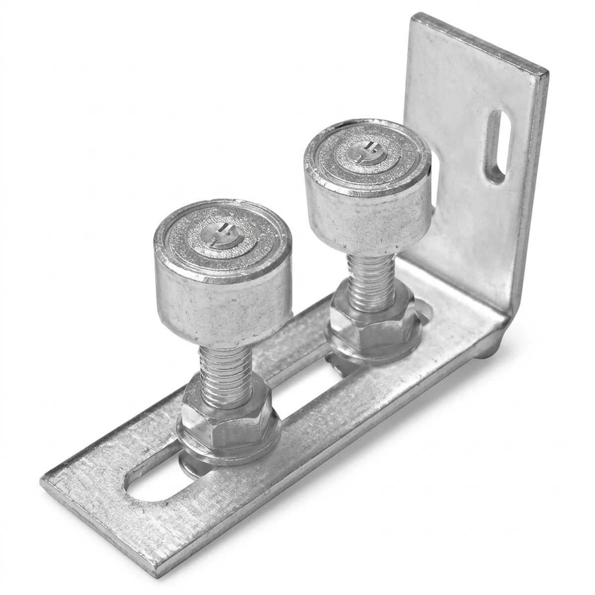 Robust guide roller with double 30mm steel rollers and short angle, Secures your sliding gate against wind and lateral forces for a stable, safe ride.
