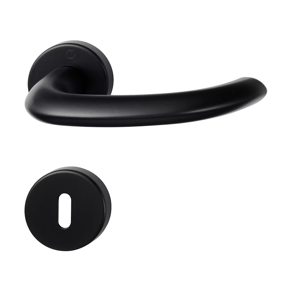 Innedörrshandtag Marseille i Svart, mattborstad ytbehandling. Med nyckelskylt. Passar innerdörrar.