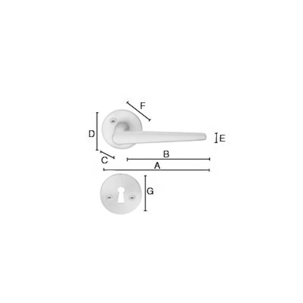 Interior door handles and key plates in a classic design. Affordable handle with a straight design and a matte surface in brushed chrome.