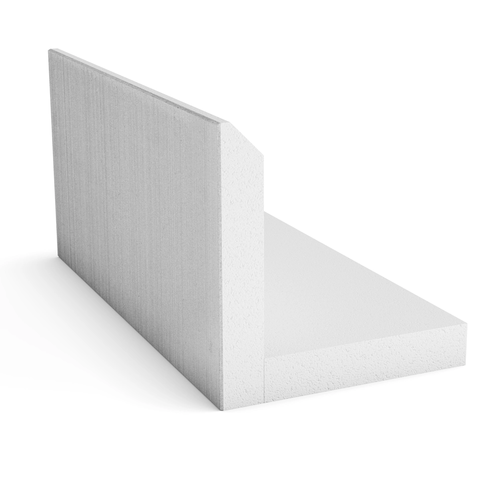 L-element S200 med borstad yta för stabil husgrund. Energieffektivt kantelement av cellplast för platta på mark till villa, garage och industri.