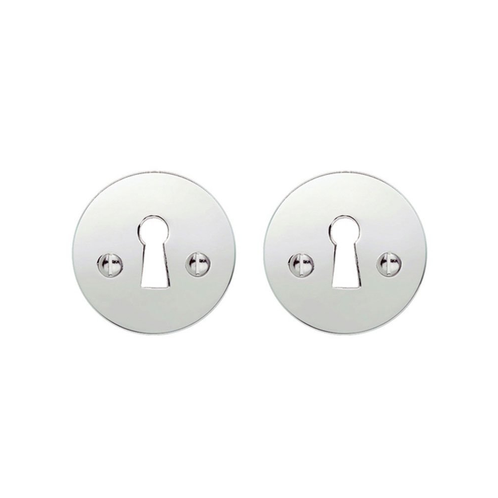 Keyplate finish Polished chrome, diameter 51mm, through screws included for easy installation.