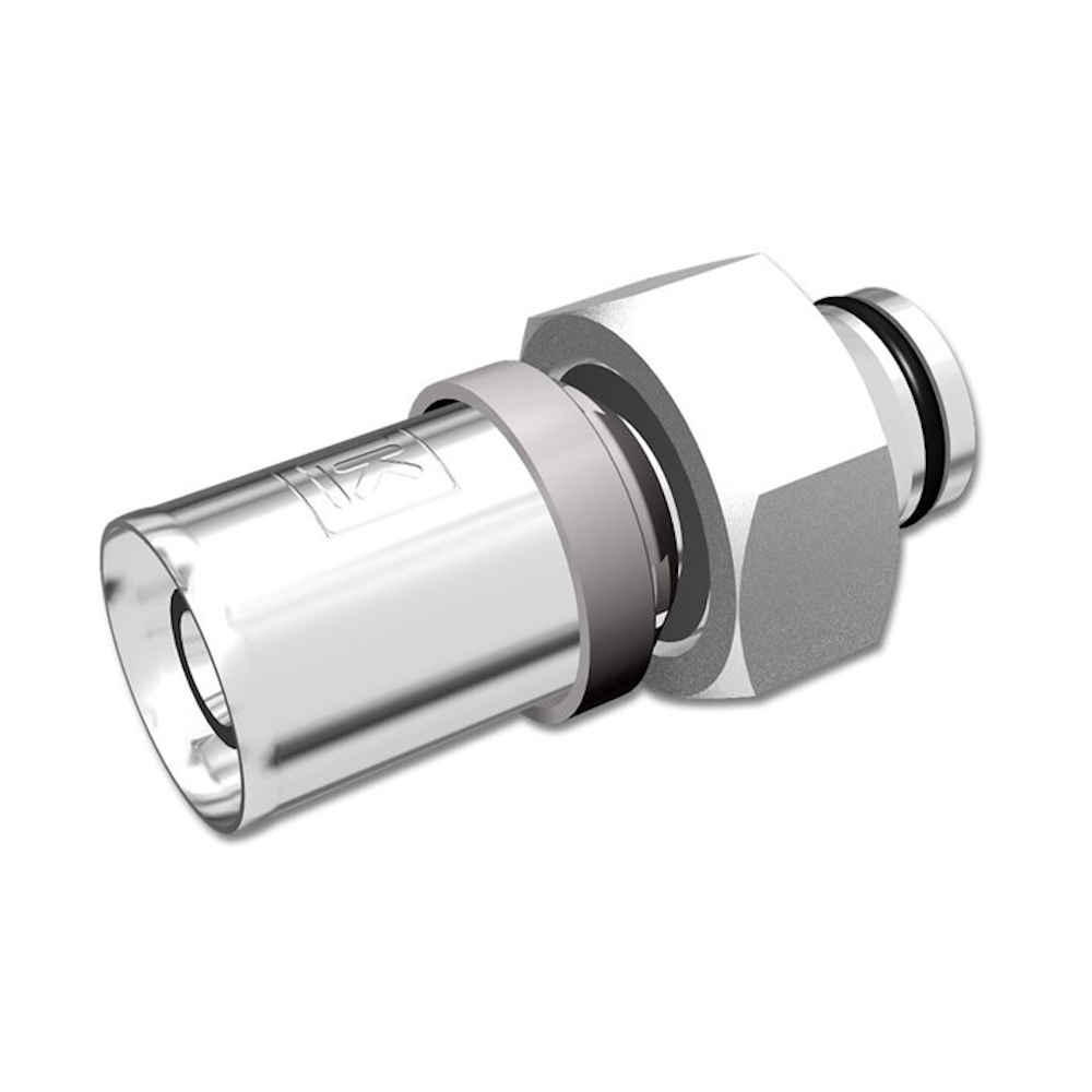 PressPex coupling with play nut for connecting LK PE-X and LK PAL Universal pipes to the outside.