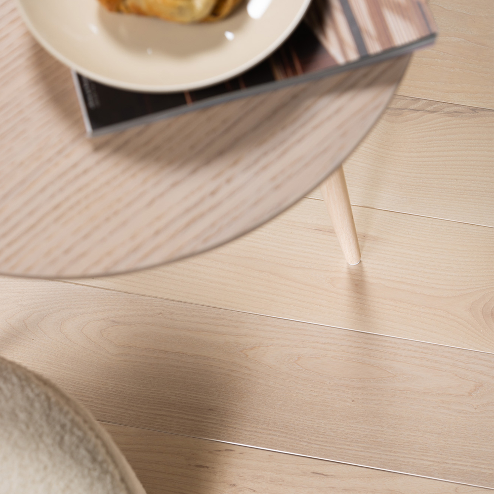 NoblesseAsh är ett massivt askgolv med inslag av kärnved vilket gör golvet rikt på färgvariationer. Ask är ett mycket hårt träslag.