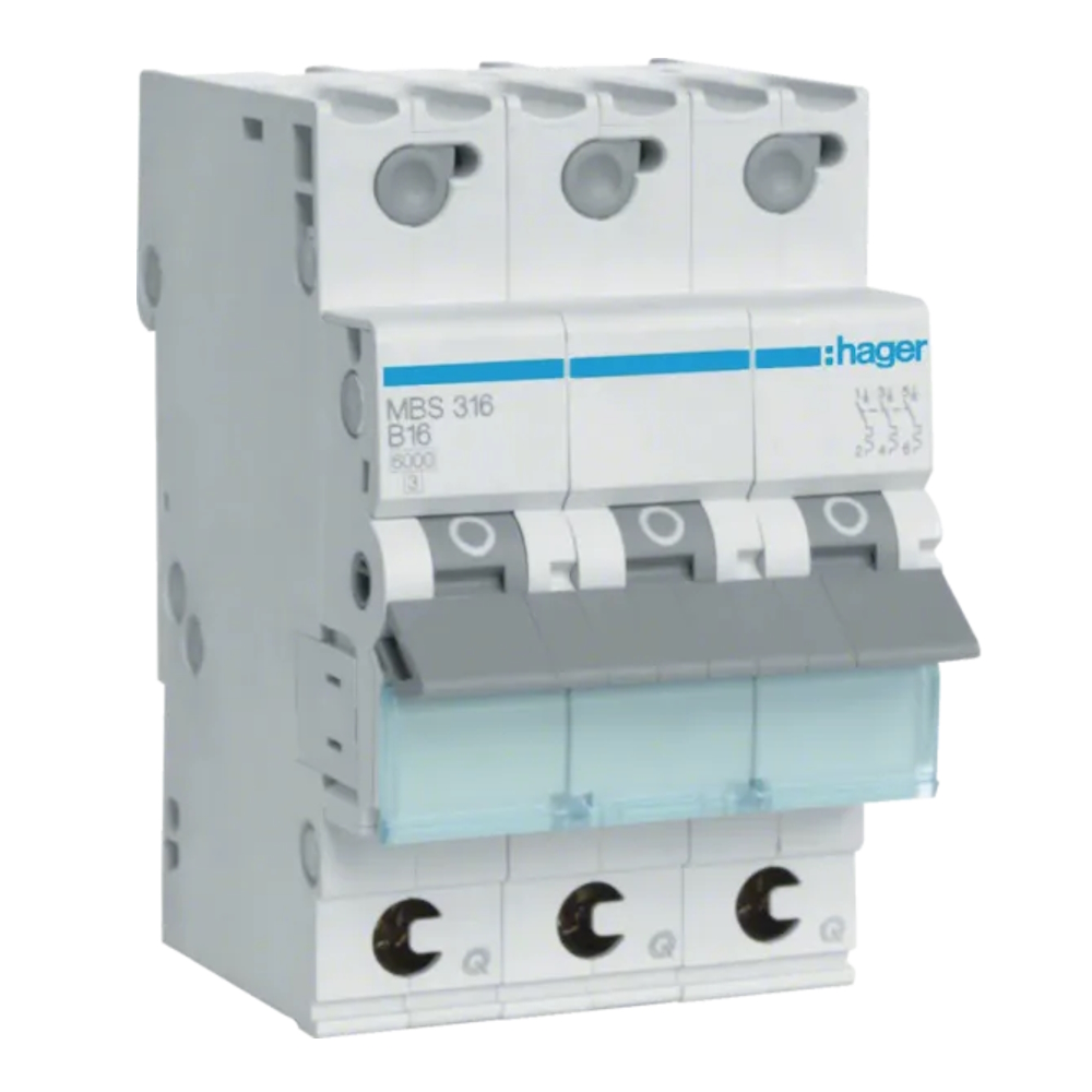 Miniature Circuit Breaker 3Poles B-Curve 16A 6kA 230-400V IP20 Hager