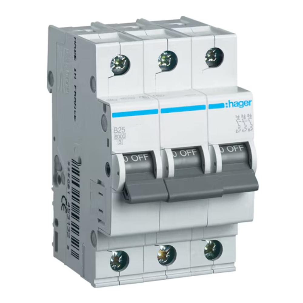 Miniature Circuit Breaker 3Poles B-Kurva 25A 6kA 400V IP20 Hager