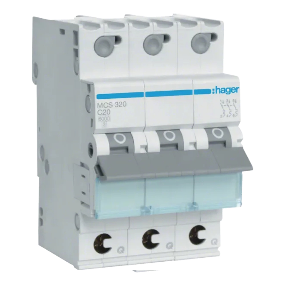 Miniature Circuit Breaker 3Poles C-Curve 20A 6kA 230-400V IP20 Hager