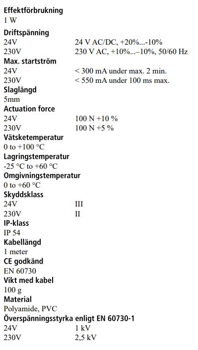 Termoelektrisk ställdon för ventiler i värme och kylsystem. Ställdonen passar Purmo group sortiment med M28 och M30 ventiler med slaglängd på max ca 2,5 mm.