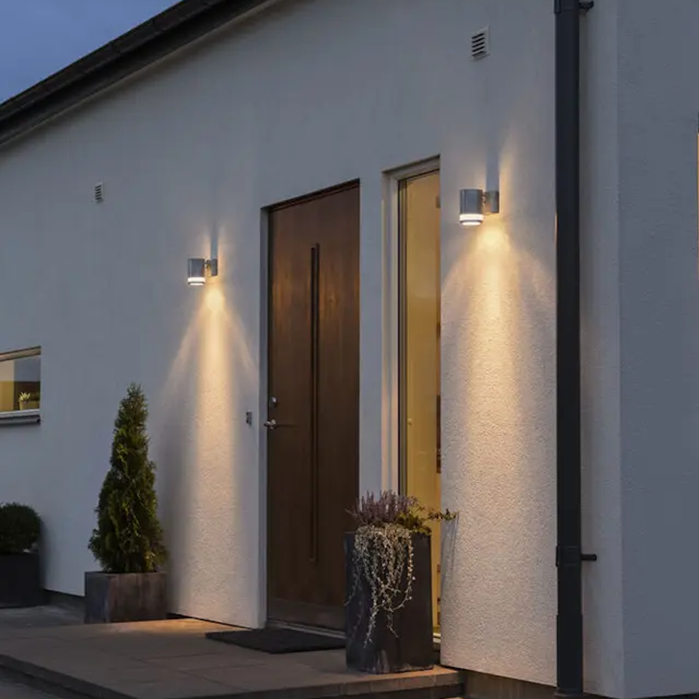Modena facade lighting in galvanized sheet metal with clear glass and acrylic glass detail. GU10 socket. Light source not included.