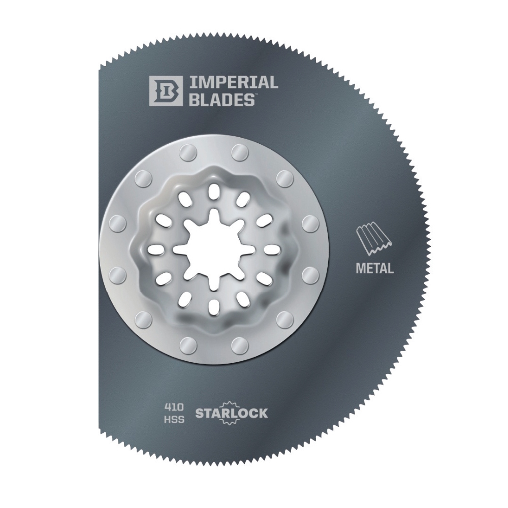 Imperial Blades saw blades are manufactured in the USA and have high quality, performance and durability. The blade has an OpenEnd mount and is open at the back edge which allows for quick changes and changes of the angle without having to remove the locking bolt. The blade is intended for sawing thin sheet metal (up to 1mm). Intended for wood with nails, plaster, board boards, plastic, fiberglass, PVC etc. SL410 is semi-round and 80mm in diameter with a cutting depth of 28mm. Corresponds to Fein blade No.106 and Bosch AZC85EIB.