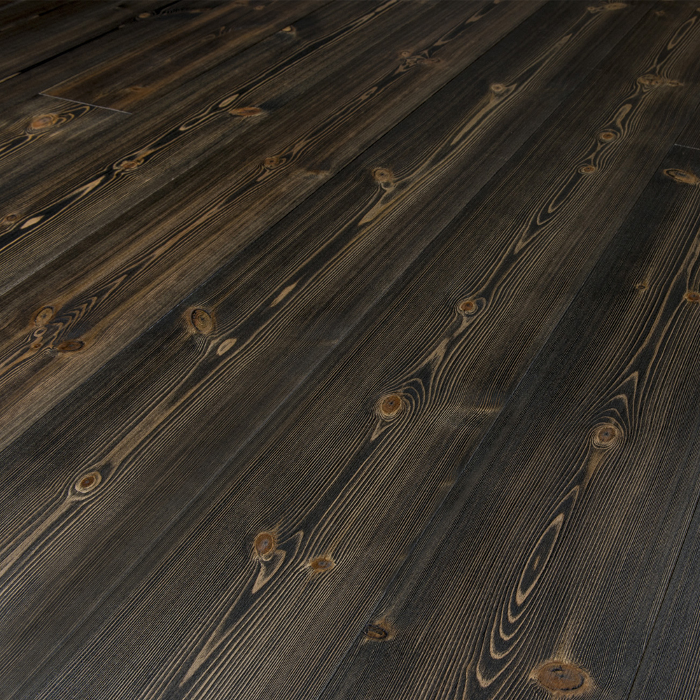 HardPine Onyx Parkett är ett parkettgolv i furu, borstat och ytbehandlat i en modern svart ton med kvistar i varierande storlek och struktur. Borstningen ger golvet en tydlig karaktär och gör det hårdare än vad det annars skulle vara. HardPine Onyx Parkett har ytbehandlats med Osmo dekorvax 3169 och Osmo matt hårdvaxolja 3062 för att få rätt finish och slitstyrka. Det här är ett golv som är lämpligt för tuff hemmiljö.