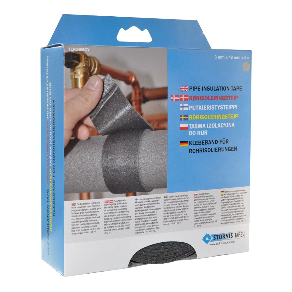 Pipe Insulation Tape 3mmx48mmx5m Grey Stokvis Tapes
