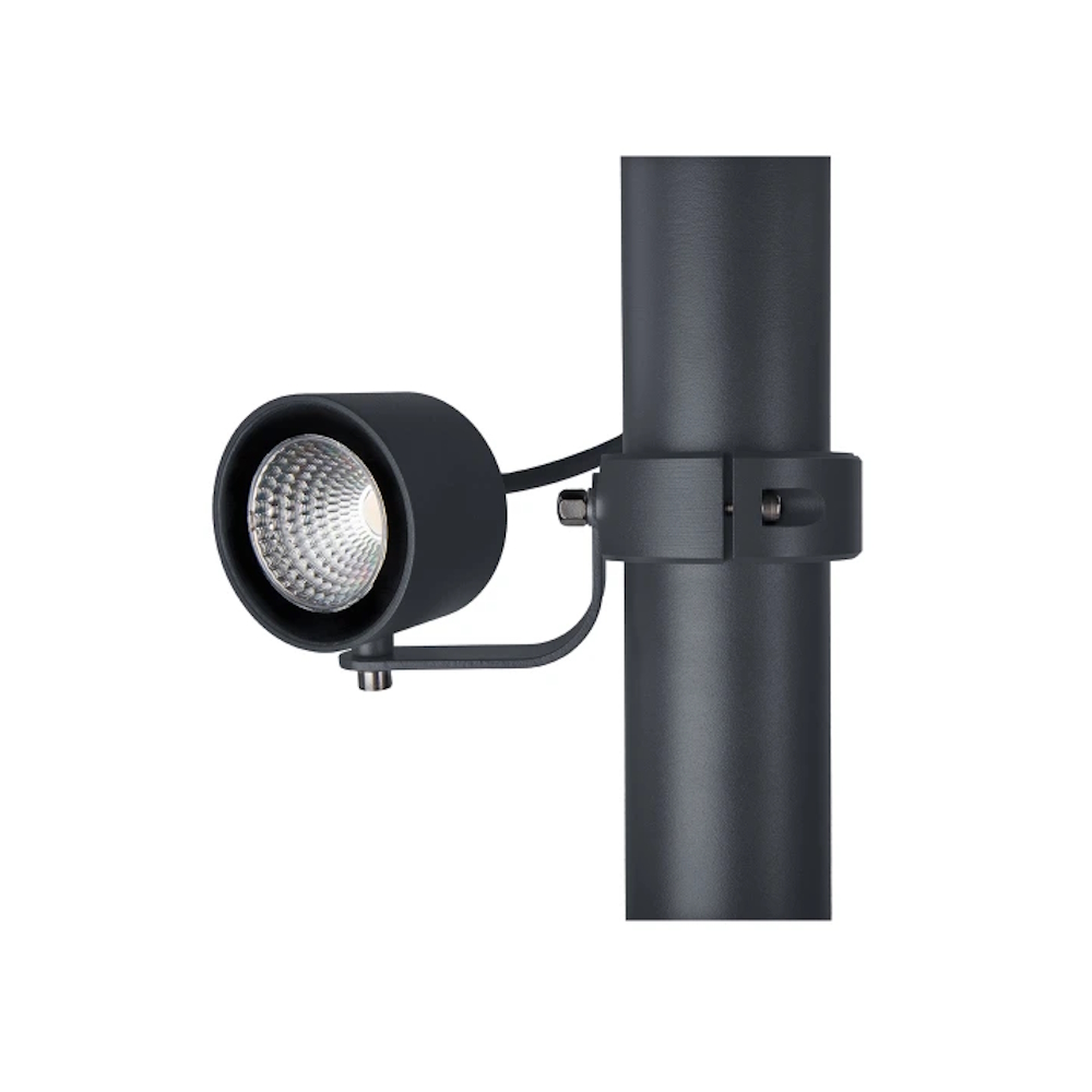 Spot luminaire in cast aluminum for landscape and facade lighting. Available for both ground, wall and pole mounting. Available with two different strengths of LED.module. Available for both 3000 and 4000Kelvin. Moss Grafit Spot for pole. 8W LED 3000K 686 Lumen out Burn time 50,000h IP65 Class 1, Dimmable. Incl bracket 50mm pole.