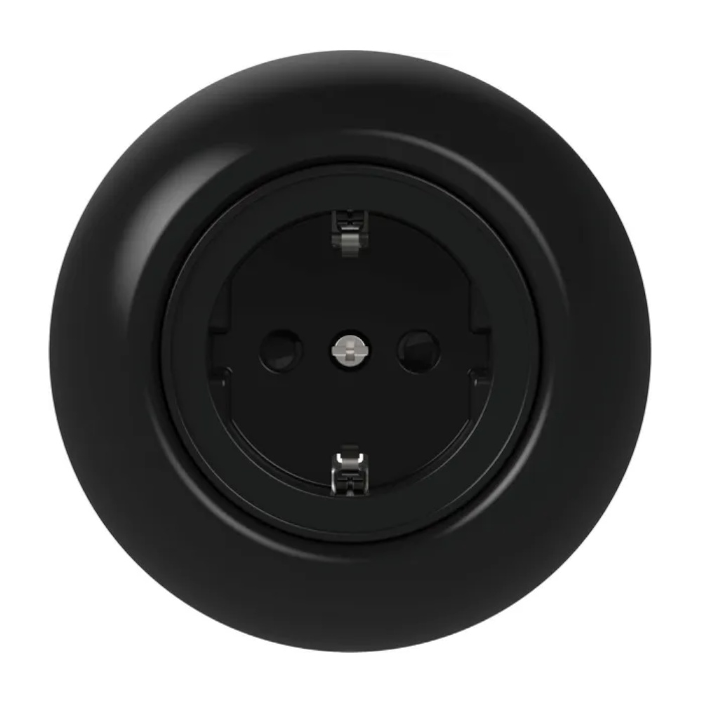 Renova 1-way socket is a complete product in black color. The socket's pole configuration is 2Pole + Ground. The device's nominal operating voltage is 250V. And its nominal current is 16A. Mounted in a device box or in a surface-mounted high box Screw connection IP class 20. The socket is made of PC/ABS, which makes it as resistant as possible. And it is mercury-free and heavy metal-free, which always takes care of the environment and your health. Renova combines an elegant older design with unique accessories that all meet today's requirements for safety and comfort. smart options such as wallpaper protection for flush or surface mounting further simplify installation.