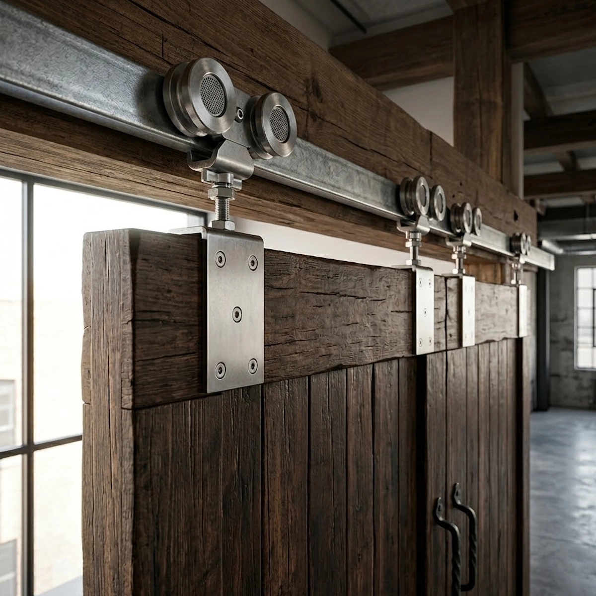 Powerful hanging rollers for wooden doors in series 500, Can handle heavy doors up to 500kg per pair, Robust design for smooth and safe movement.
