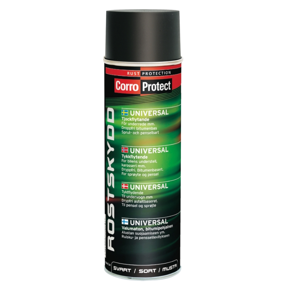 Thick bitumen-based rust protection agent intended for the car's undercarriage. It is drip-free and leaves a thick rust-proof protective film.