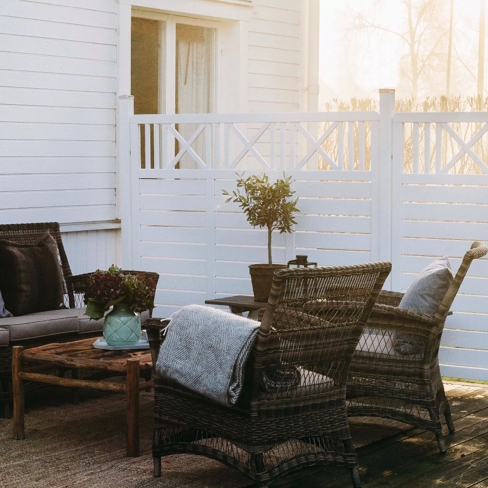 Screen Salvia 2 has dimensions 90x150/90cm. Screen series Salvia is a white painted screen in a classic style. Wood preservative treated spruce, primed once and top coated twice. All our screens in the Salvia series are FSC-certified for sustainable forestry.