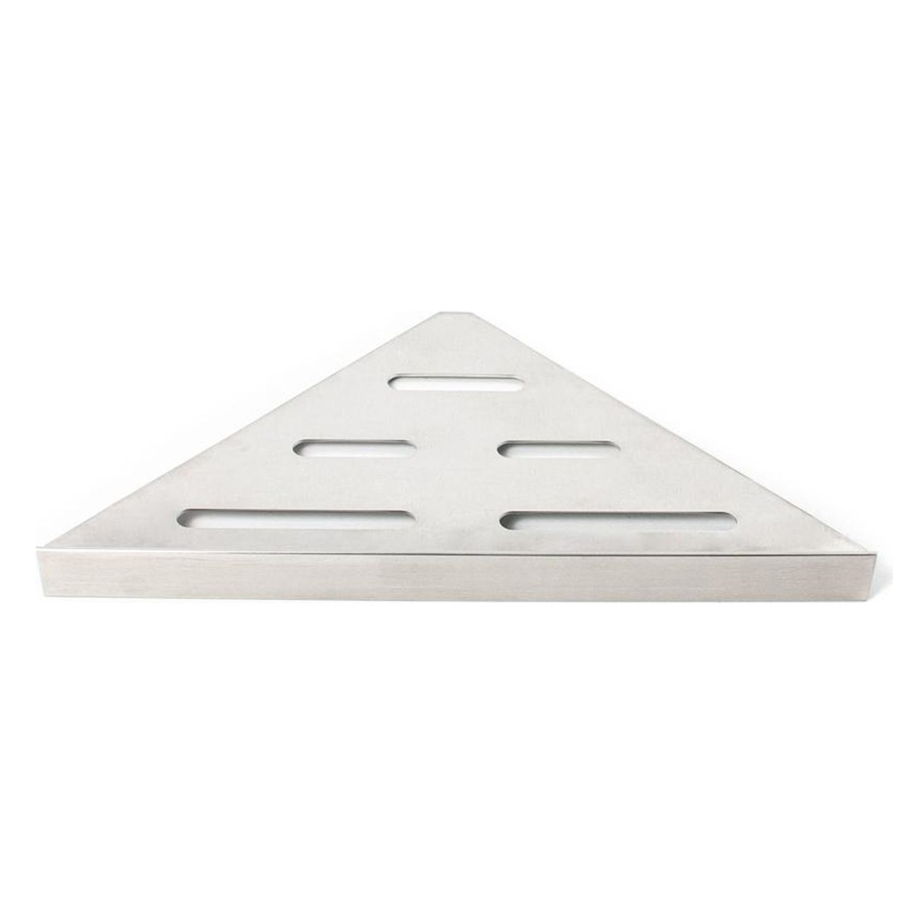 Elegant shower shelf for mounting with ceramic tiles in the shelf. The shelf is attached to the joint with silicone. Fits in 90° corners. Made of brushed stainless steel type AISI 304. Material thickness: 1.2 mm. Not acid-resistant.