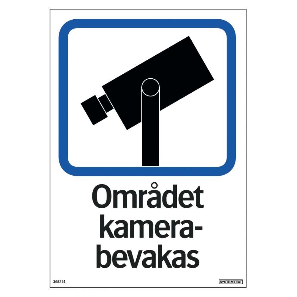 Sign Area Camera Monitored. PVC-free material. Mounted to most surfaces with, for example, double-sided adhesive tape or with sign bracket.
