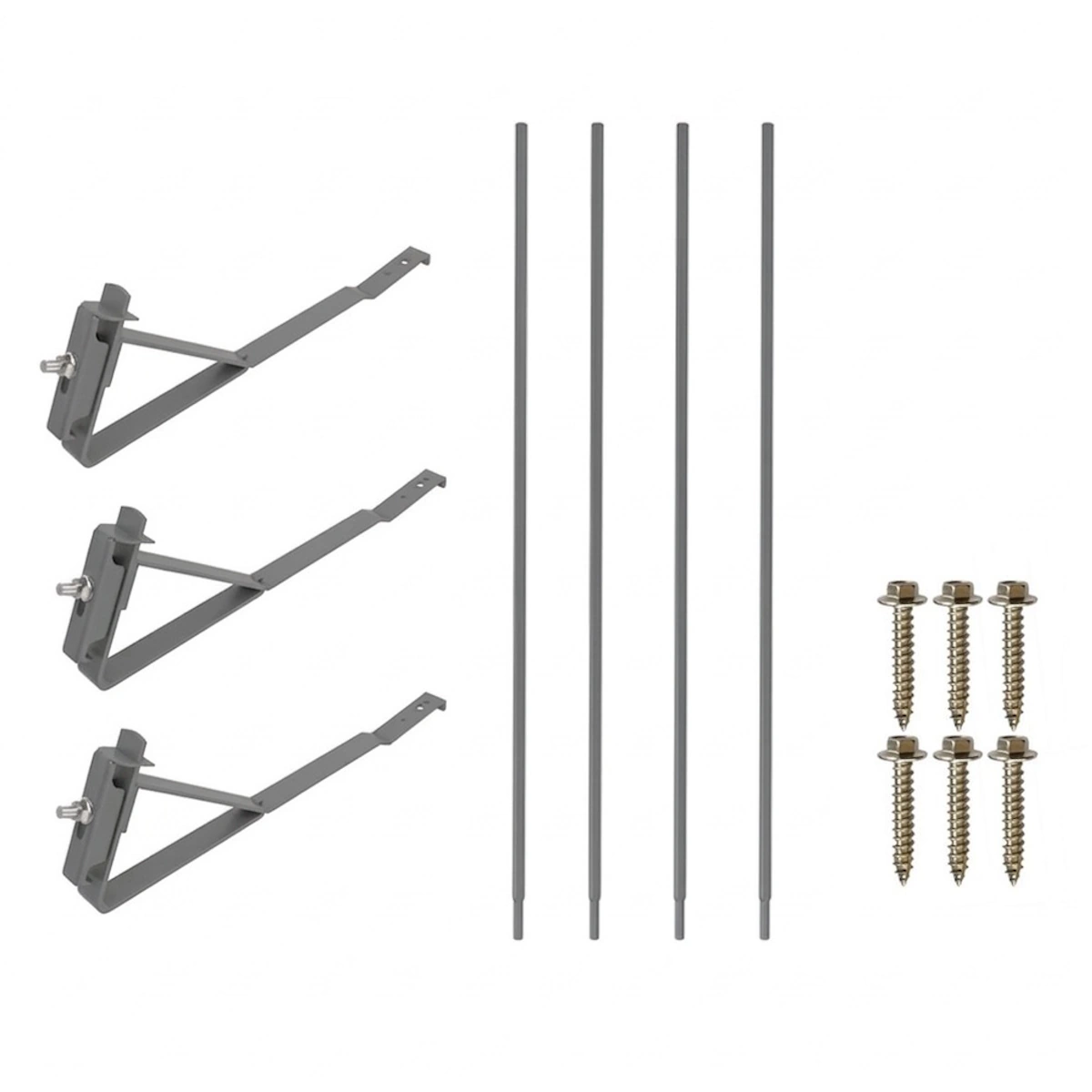 - Contains: 3 brackets, 4 pipes 1.2 m and 6 wood screws 6.3x38 mm