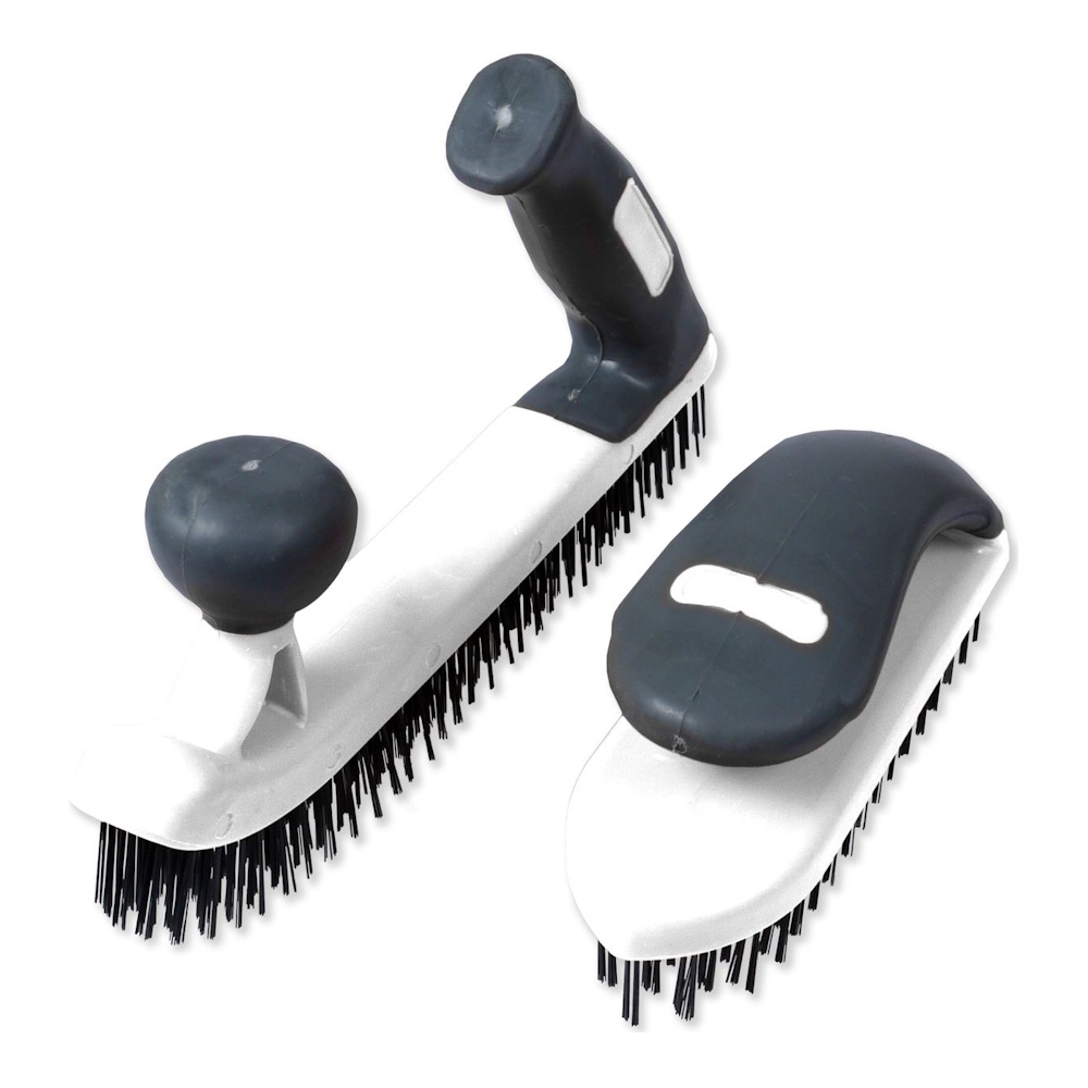 Steel brush set with heavy duty steel brushes. If you have larger rusty surfaces or concrete that has very loose paint. Then this is a suitable set. 2 brushes with rubberized grips and carbon steel bristles.