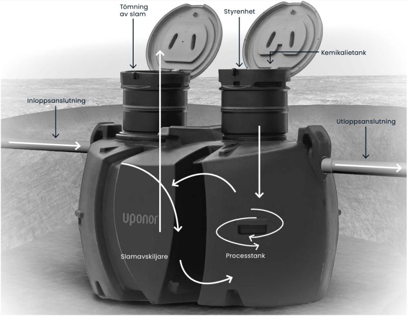 Clean 1 är ett biologiskt/kemiskt reningsverk som kan ta emot allt hushållsavloppsvatten från en fastighet.