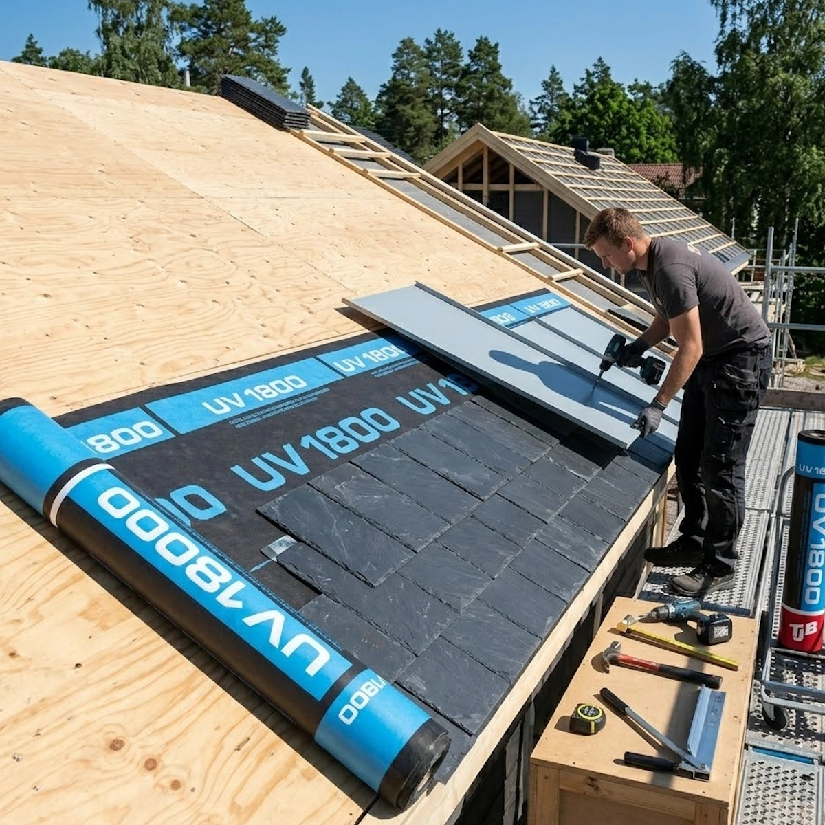 Buy UV 1800 Dubbel KK for flat roofs with 12 months UV protection, perfect under sheet metal and slate with 30 year warranty, order here.