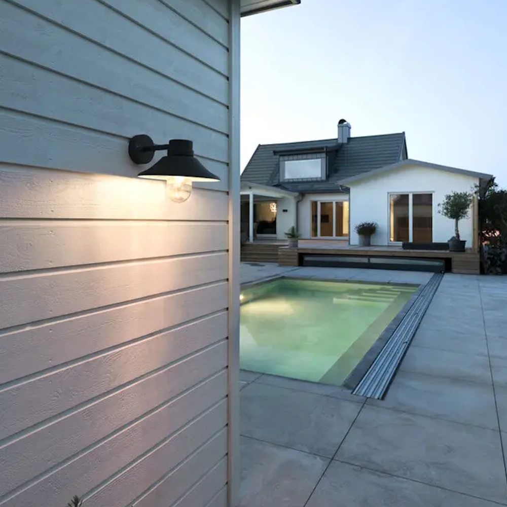 Vega facade lighting with straight arm in the popular Vega series. Painted black aluminum. E27 socket.