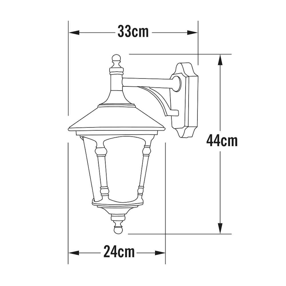 Wall light Virgo Down E27 is an elegant facade lighting in the form of a classic lantern. Delivered without light source.