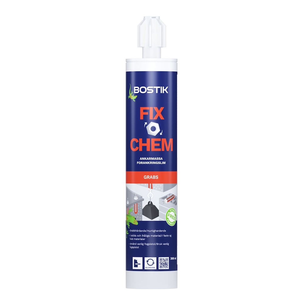Fix-O-Chem ankarmassa härdar runt infästningar i betong, tegel eller andra solida material. Använd för många av de installationer som behövs i en byggnad - rör, kablar, mediautrustning mm. Enkel och säker infästning i en och samma produkt. Appliceras med en vanlig fogspruta.