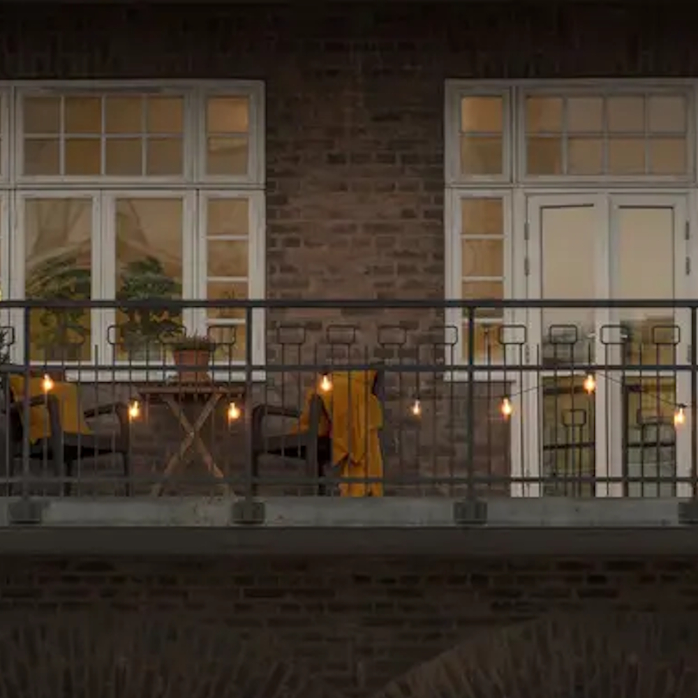 Partyslinga för uteplatsen med 10st amberfärgad utbytbara LED inklusive, inbyggd dimmer/timer och lampavståndet är 50 centimeter.