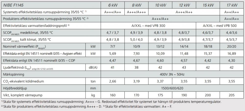 NIBE F1145 finns i följande effektstorlekar 6, 8, 10, 12, 15 och 17 kW och passar därmed både i bostäder och fastigheter.