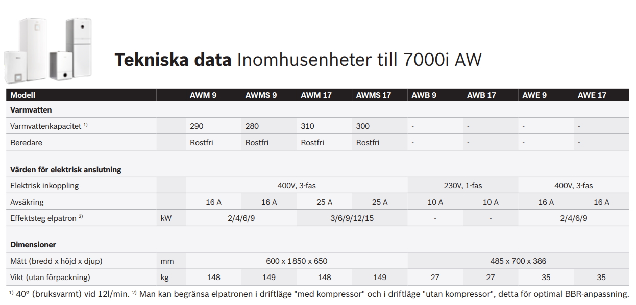 Elpanna för samkörning med Bosch CS 7000 iAW 13-17. Inbyggd varmvattenberedare 185 l. Elpatron 15 kw.