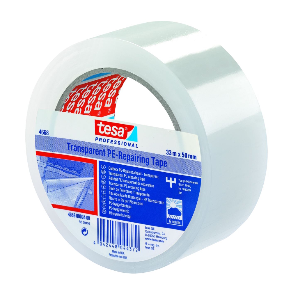 Byggfolietejp av PE Tesa, för reparation och skarvning av plastmaterial, speciellt för skarvning av LDPE-folie.