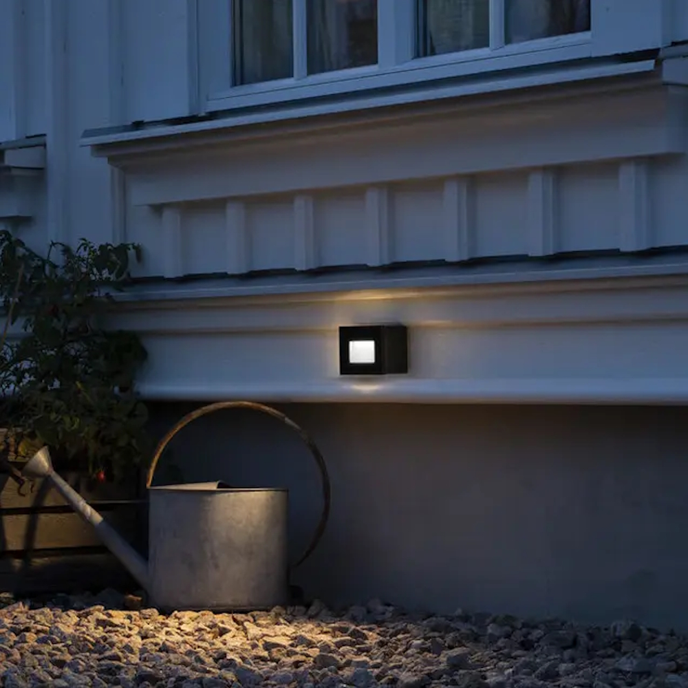 Vägglykta Konstsmide Chieri 4W LED Rektangulär är en modern fasadbelysning i form av en rektangulär låda. LED-belysningen skapar vackra skuggor på väggen.