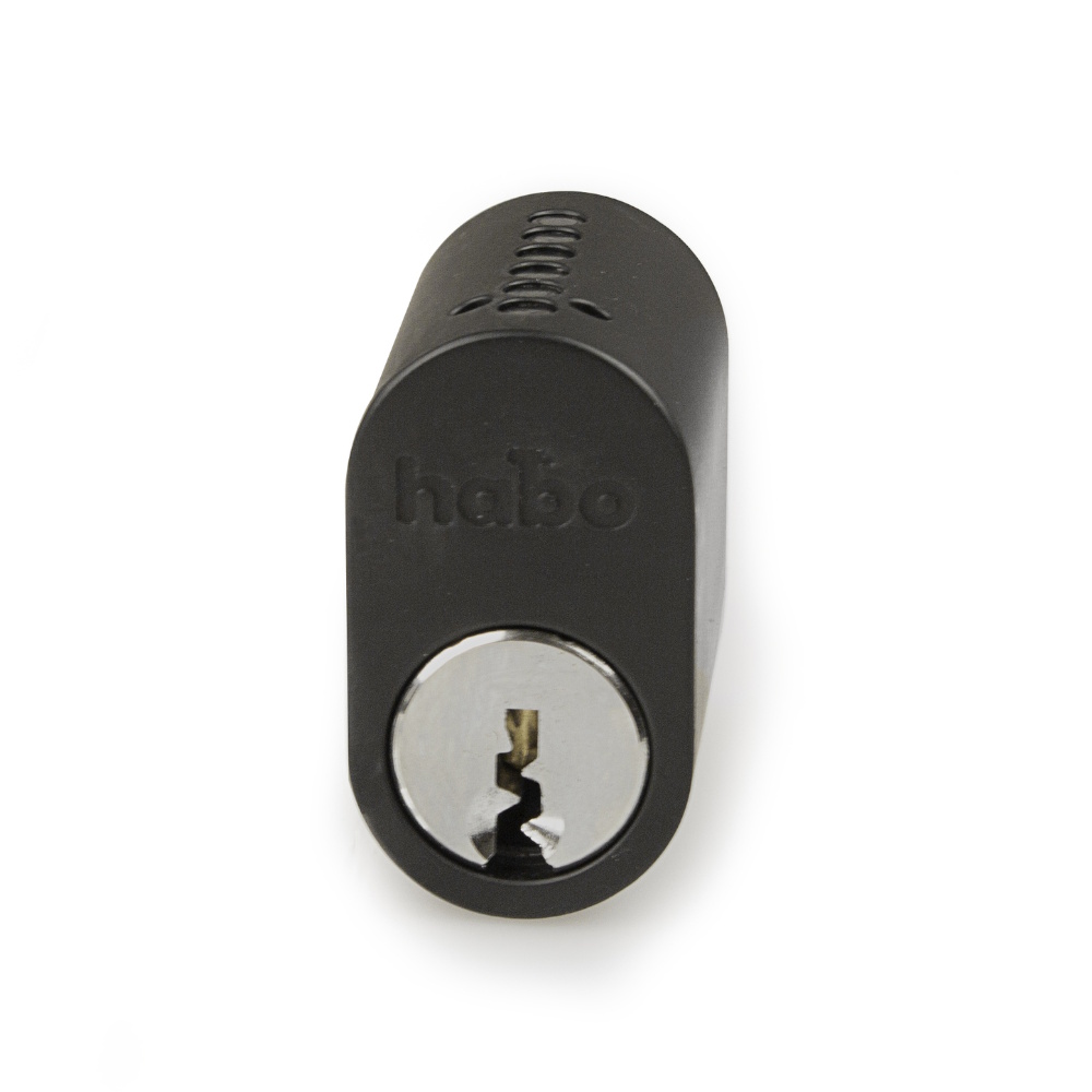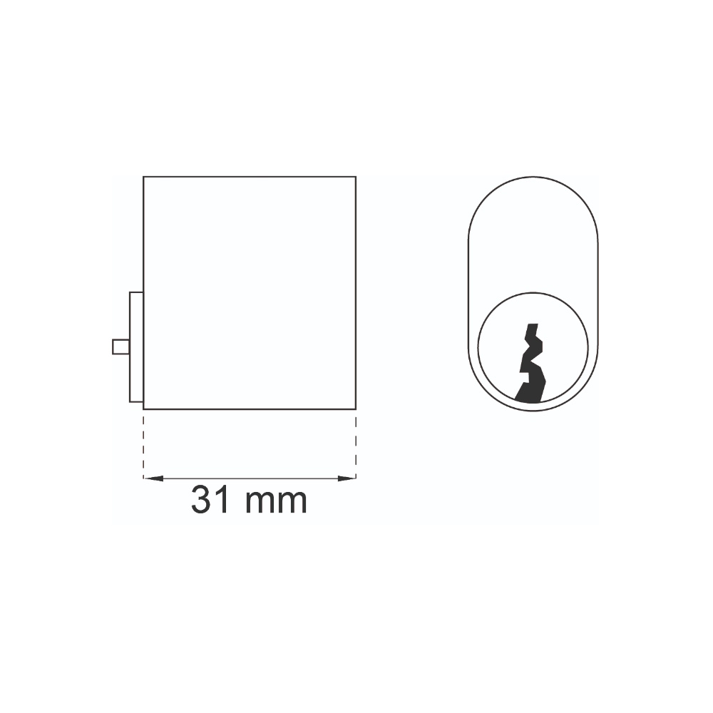 Oval låscylinder av mässing i modern färg för genomgående fastsättning, 6 stift. Levereras med 5 st nycklar.