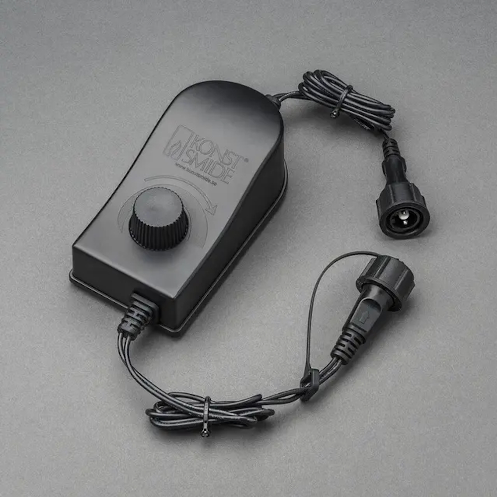Dimmer från Konstsmide som passar till 31V-systemet. Dimmern har en svart soft cable.