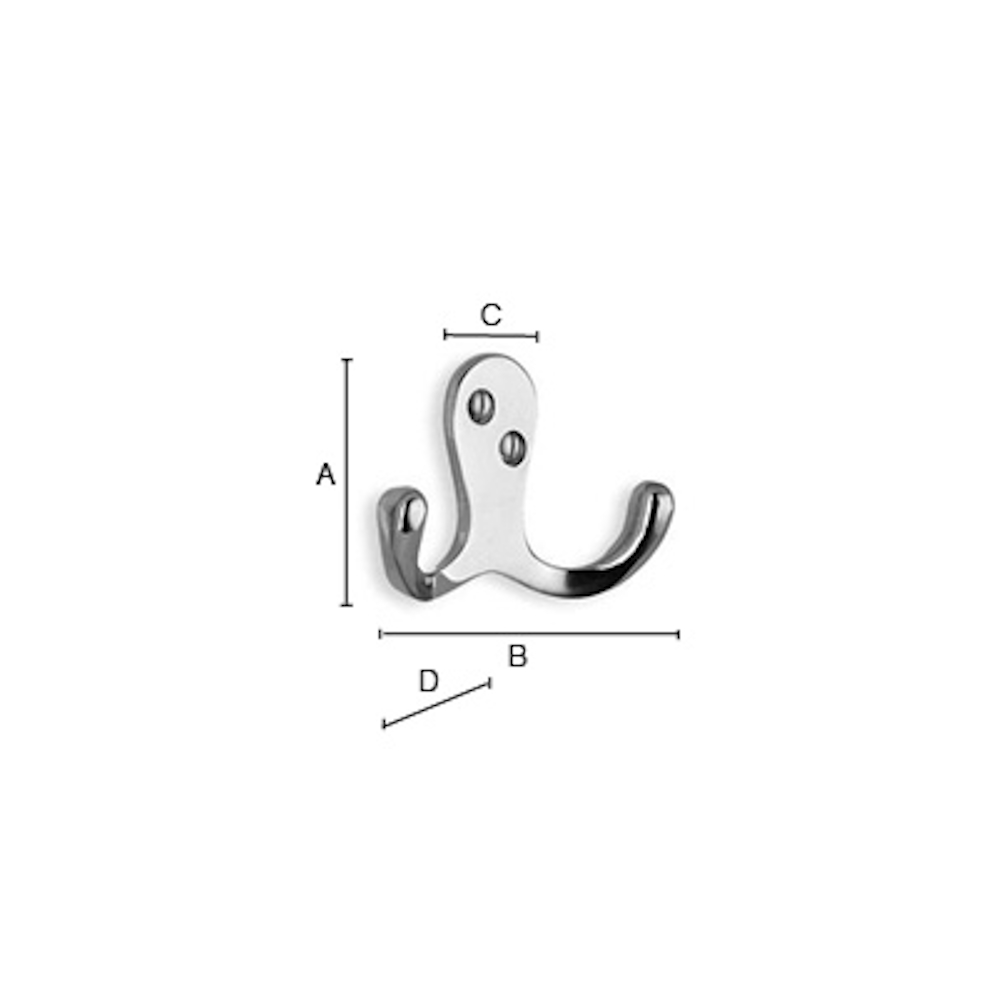 Dubbelkrok i polerad krom med den klassiska designen som påminner om en bläckfisk. Perfekt för att hänga upp jackor i hallen, en väska i garderoben eller några smycken i sovrummet. Kroken är dessutom enkel att montera med hjälp av skruvarna som ingår.