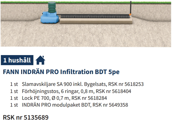 INDRÄN PRO-infiltration för BDT-vatten, ett hushåll. Inklusive modulpaket och slamavskiljare.