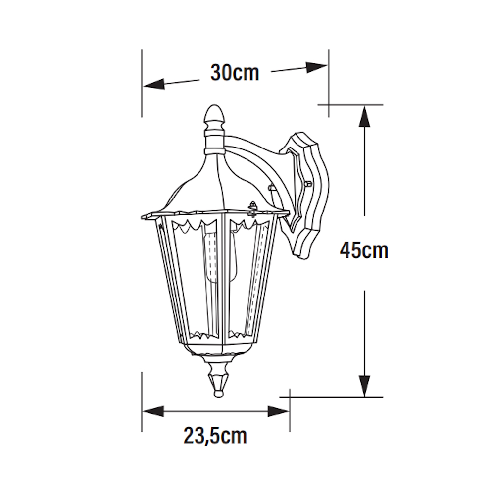 Vägglykta Konstsmide Firenze 100W Ned E27 är en elegant fasadbelysning i form av en klassisk lykta. Den har klart glas och levereras utan ljuskälla.